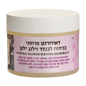 דאודורנט נשי ופרחוני. ניחוחות גרניום תפוז לבנדר וילנג ילנג.