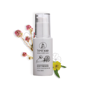 סרום לפנים עם חומצה היאלרונית, שמן נר הלילה ושמן רוז-היפ