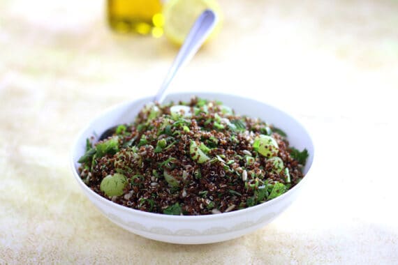סלט שהוא פצצת בריאות בזכות כל רכיב בפני עצמו, הקינואה, הענבים ועשבי התיבול. טעים, בריא ומהיר.